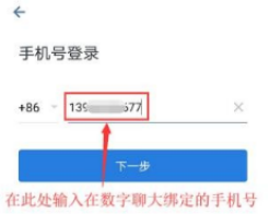 - 输入在数字聊大绑定的手机号,然后点击【下一步】,就会通过手机短信,收到一个由 6 位数字组成的验证码。