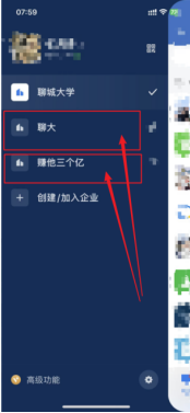 如果你之前加入了其他组织,可以点【消息】界面左上角的三线图标,进入其他组织。