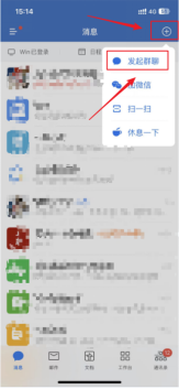 (1)点击右上角的【加号】按钮,选择下拉菜单中的【发起群聊】,进入选择联系人界面。